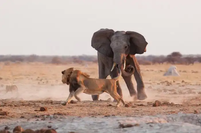 Слону есть за что не любить львов. Изредка большие кошки добывают слонят. Впрочем, это случается крайне редко.