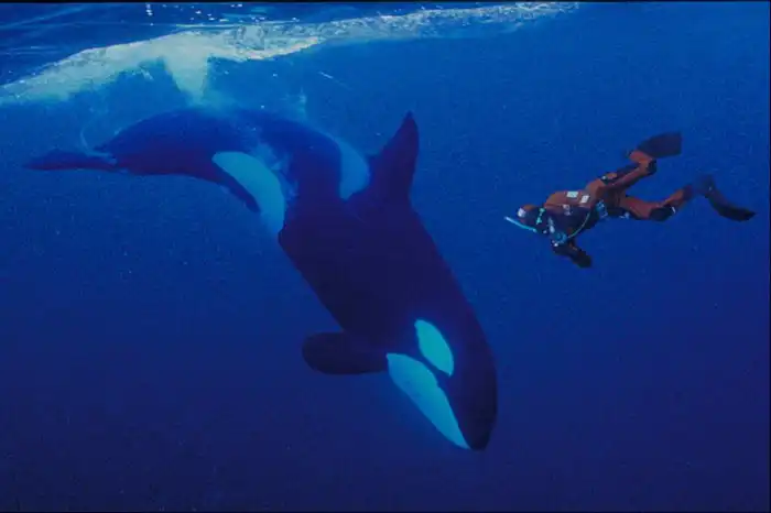 А вот в естественной среде обитания косатки ни разу не нападали на людей. По отношению к человеку они испытывают либо безразличие, либо любопытство. Хищники близко подпускают к себе дайверов и даже позволяют себя трогать.