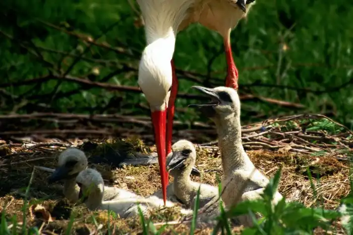 Каждую весну самка аиста откладывает 1 – 7 яиц. Примерно через месяц из них вылупляются птенцы. Аистов нельзя назвать плохими родителями. Они поочерёдно сперва высиживают яйца, а потом кормят птенцов.