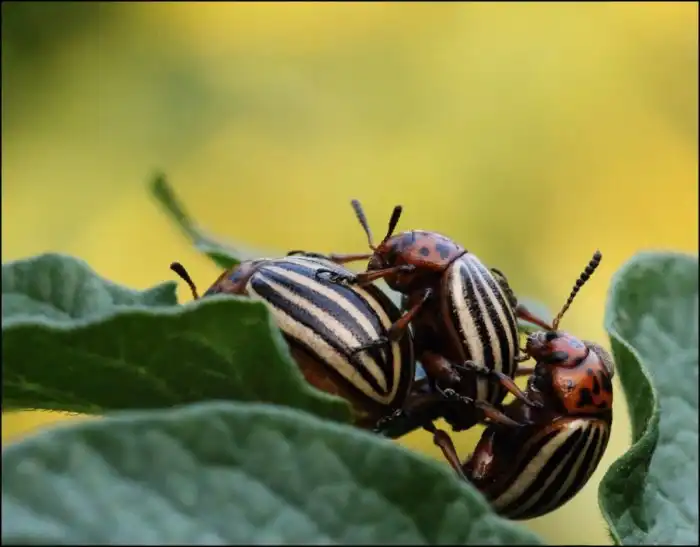 После успешной зимовки Колорадские Жуки первым делом приступают к спариванию. Вот они, западные ценности! За летний период самка способна создать целую колонию новых вредителей, до 1000 яиц в сезон!