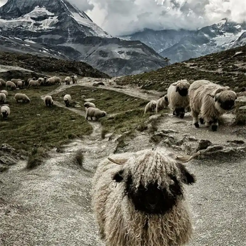 Валлийских черноносых овец (Walliser Schwarznasenschaf) разводят в Швейцарии, в основном для мяса и шерсти. Это горная порода, хорошо приспособленная к пастбищному содержанию в каменистых районах ее происхождения. И бараны, и овцы этой породы - рогатые. Отличительная особенность этих овечек - угольно-черные мордашки, благодаря которым они завоевали популярность.
