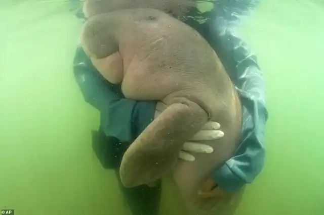 Маленький дюгонь потерял маму и его нашли местные зоозащитники. Звереныша назвали Мариум. Его отвезли в ближайшее место обитания дюгоней, но млекопитающие не потеряло интерес к людям. Детеныш стал прижиматься к проплывающим мимо лодкам, поэтому ветеринары пришли к выводу, что он ассоциирует их с матерью. На данный момент специалисты выкармливают дюгоня. Биологи считают, что Мариум научится жить самостоятельно, когда достигнет нужного возраста.