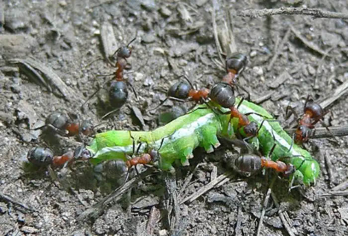 Пространство вокруг муравейника поделено на секторы, каждую поляну окучивает своя команда. Она состоит из одного разведчика и десятка фуражиров. Схема работы банальна: разведчик ищет вкусненькое в своём секторе, затем ищет отлынивающих от работы фуражиров. Объясняя, куда им идти, начальник попутно выписывает своим подопечным люлей, для скорости. Дальше фуражиры уже сами всосут, что всасывается, открутят, что откручивается и обоссут муравьиной кислотой каждого, кто будет им мешать.
