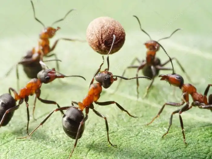 У разведчика же ответственность персональная. Сначала тяжко. Всё по памяти. Ничего непонятно. Фуражиры ничего не могут и быстро гибнут. Но после упорного труда сектор обрастает инфраструктурой: дорогами с двусторонней полосой, феромонной разметкой. Больше не нужно растолковывать бригаде, где еда. Достаточно сказать «точка 2» и подчинённые побегут к назначенному месту. Грамотно организованная работа упрощает жизнь: разведчики и фуражиры дают примерно половину добываемой пищи, хотя сами составляют лишь 12% от всей колонии.