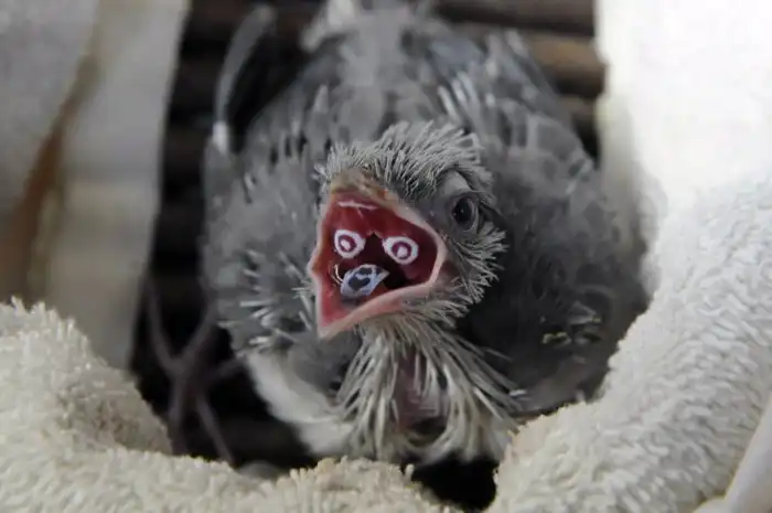 Малыши появляются на свет практически полностью голыми и слепыми. Родители не покидают гнезда и заботятся о детишках до момента их полного взросления. Но на случай если пернатые бунтари, всё же, забудут о своих обязанностях, во рту птенцов имеются специальные отметины. Их очертания напоминают дополнительный раскрытый клюв. Занимательный рисунок служит указателем, куда именно нужно класть еду.