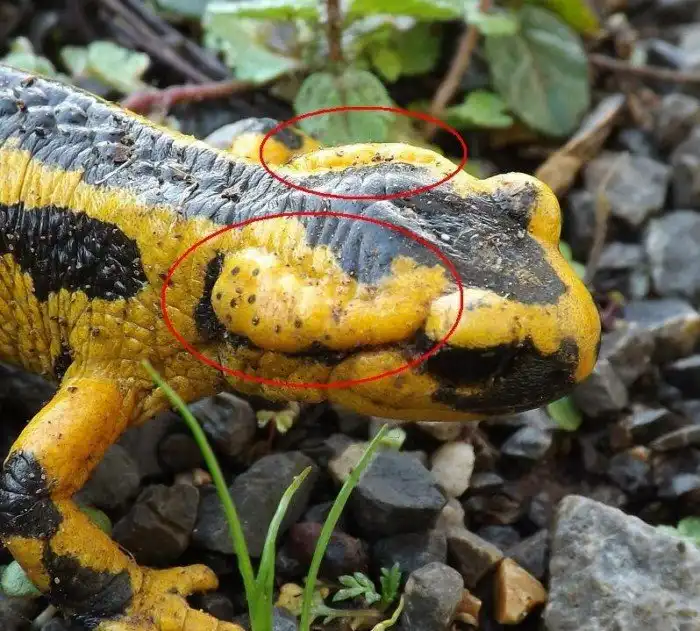 Вот в этих железах яд и прячется. Съесть саламандру, а железы выплюнуть - не вариант!