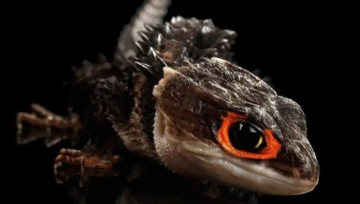 Кожа животины, как и у пубертатного подростка, покрыта наростами и бугорками. Ярко-оранжевые круги под и над глазами напоминают макияж продавщицы хлеба из местного ларька. А конусовидная моська делает сцинка похожим на маленького динозавра или, как мы можем понять по названию, крокодила.