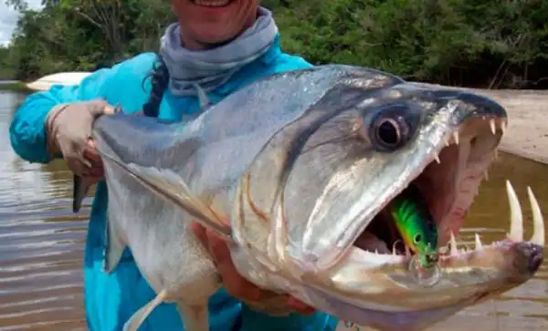 Примерно в том же ареале водится 50-килограммовая рыба-голиаф. Она не зря считается почти самой опасной из всех пресноводных рыб: ее клыки настолько огромны, что по сравнению с ними зубы белой акулы кажутся молочными.