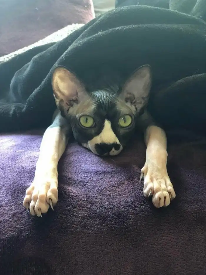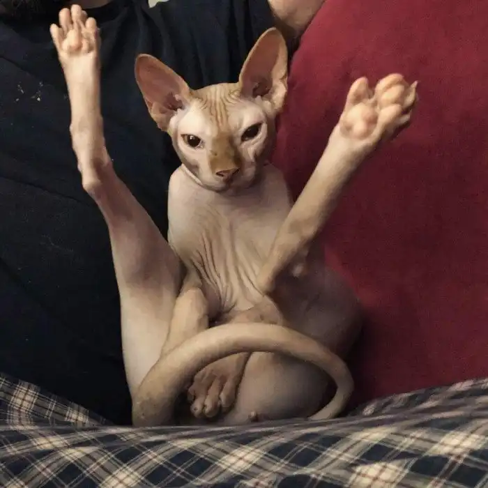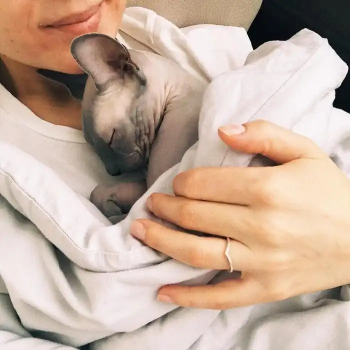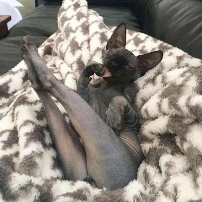 7. «Мой сфинкс Людовик нежится в кроватке и улыбается»