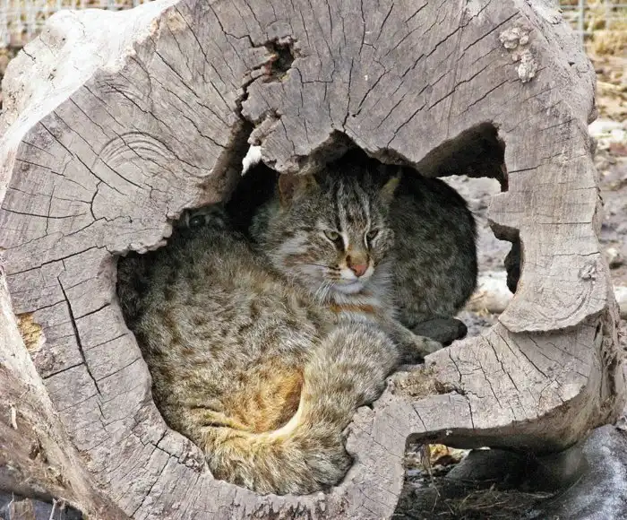 Начнём по классике, с внешности. Лесная киска крупнее домашних собратьев. Длина её тела от кончика носа до кончика хвоста – 75-90 см. Вес кошары примерно равен ведру огурцов — 4-6 кг.
