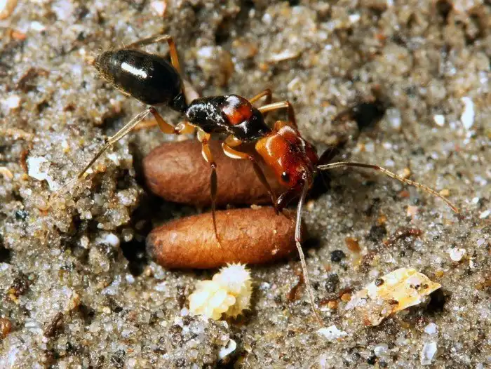 Да, наши гости — отменные убийцы. Но вот строители из них так себе. В отличие от большинства сородичей, гнёзд одонтомахусы не строят. Чаще всего животинки заселяются в уже заброшенные термитники и муравейники. Всего этих терминаторов может расплодиться до 10 тыс штук в колонии.