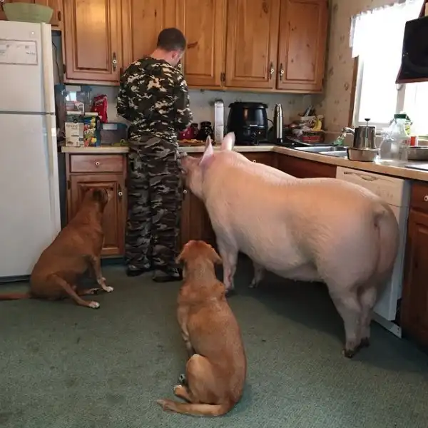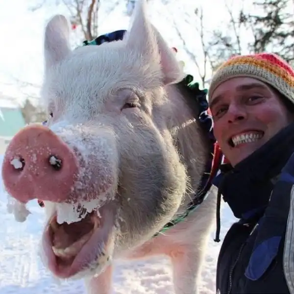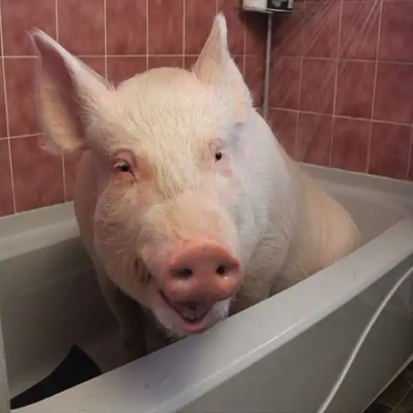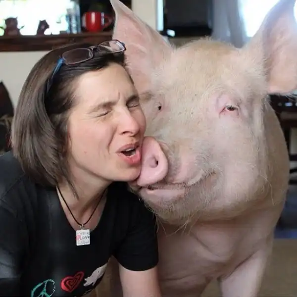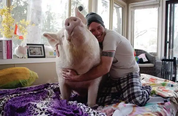 Оказалась, что Эстер самая настоящая свинья! Когда парни привезли новою любимицу к ветеринару, тот сильно удивился, что хозяева называют Эстер мини-пигом. По всем признакам это был самый обыкновенный поросенок. Ребята убедились в этом довольно быстро. Максимальный вес взрослого мини-пига - 30 кг, а Эстер уже к 8 месяцам весила 77 и это явно было только началом. В итоге "пятачок" вырос в почти 300-килограммового гиганта. Но то, что их старый знакомый "подложил им огромную свинью", ничуть не расстроило канадцев, а скорее наоборот. Они полюбили Эстер, как члена семьи.