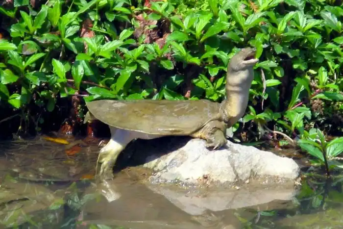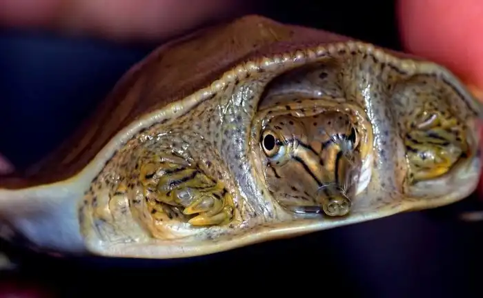 Чтобы не спалиться перед разного рода любителями черепашатины, длинный нос в форме хоботка не даст черепахе выдать своё местоположение.