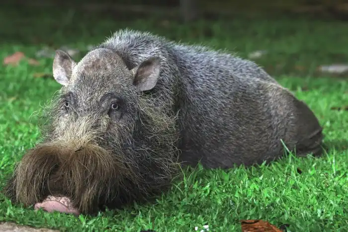 Вся жизнь нашего героя проходит в закрытых тусовках под названием стадо. 2-3 десятка подиумных красоток расхаживают по мангровым зарослям в поисках пропитания. Едят зверушки всё что угодно: от белка в виде падали, до лёгких фруктовых салатов из паданцев. Компашка бородатых свиней не занимает постоянной территории. Животины постоянно слоняются по джунглям, аки модели по клубам и ресторанам.