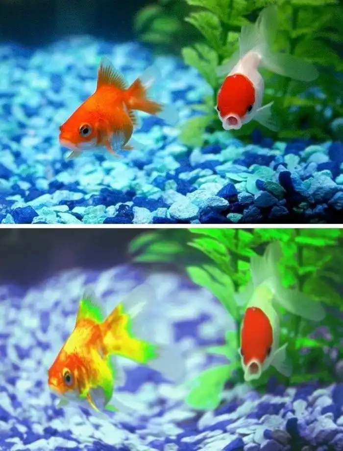 Ваша обычная аквариумная рыбка может видеть в ультрафиолете, и для нее все в непосредственной близости увеличивается. Наверное, поэтому рыбы все время выглядят удивленными.