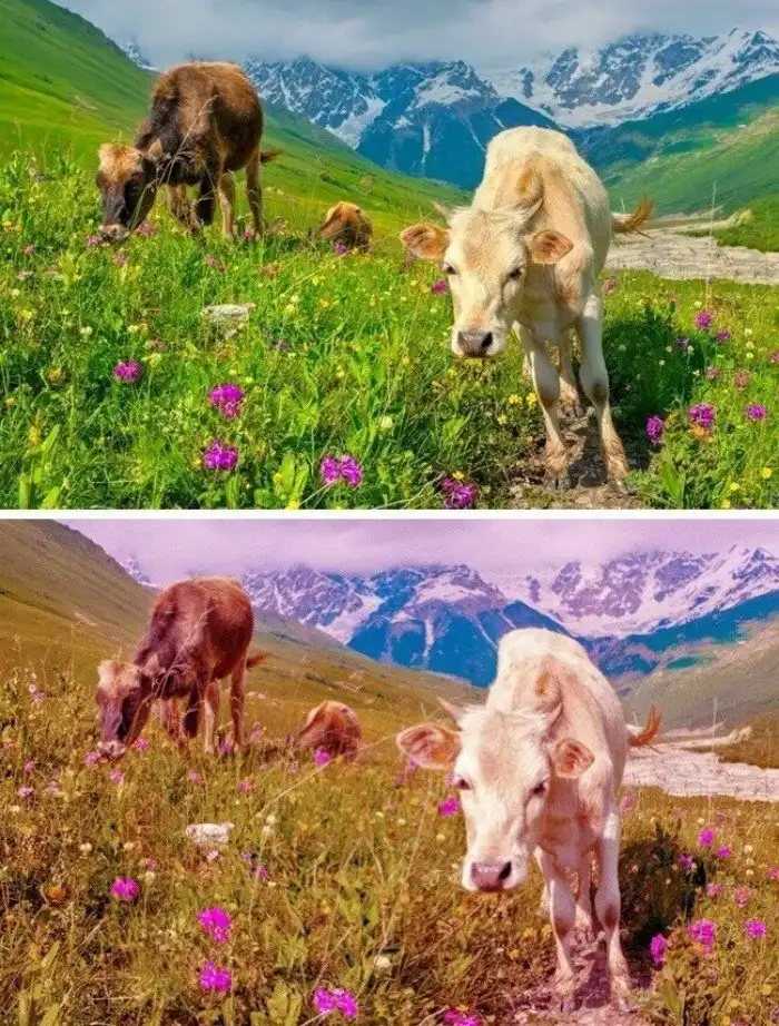 Коровы, пасущиеся на лугу, видят его не зеленым, а оранжевым и красным. И при этом они все видят немного увеличенным.