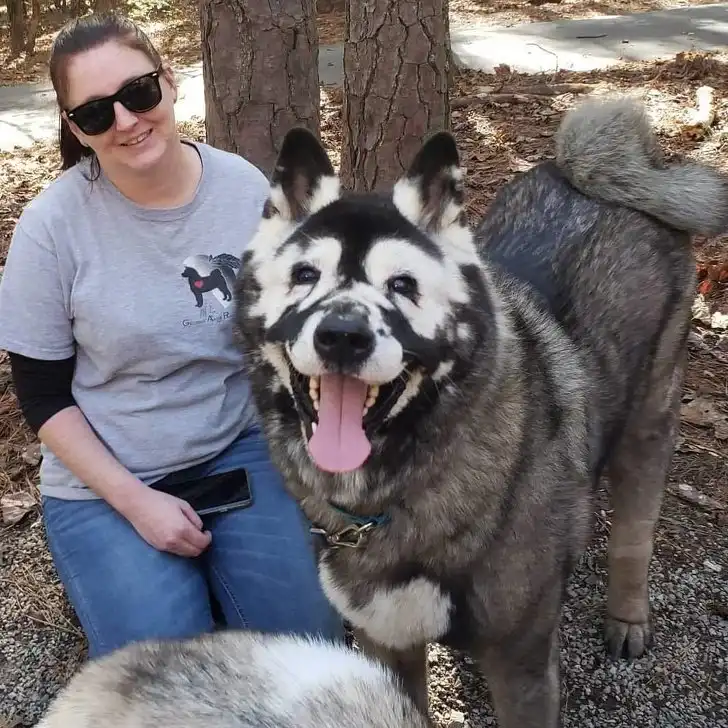 2. Это Джакс со своим человеком. Джакс — акита-ину, который из-за нарушенной пигментации наделен такой необычной «маской» на морде
