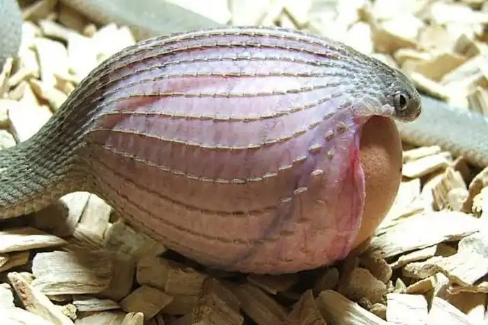 Во-первых, яичная змея почти полностью лишена зубов. В общем-то, они и не нужны, если твоя добыча ещё даже не родилась. Делать кусь при таких обстоятельствах – бессмысленно. Поэтому рептилия выглядит словно бабушка, забывшая вставить свою челюсть.