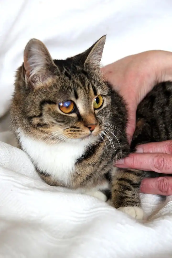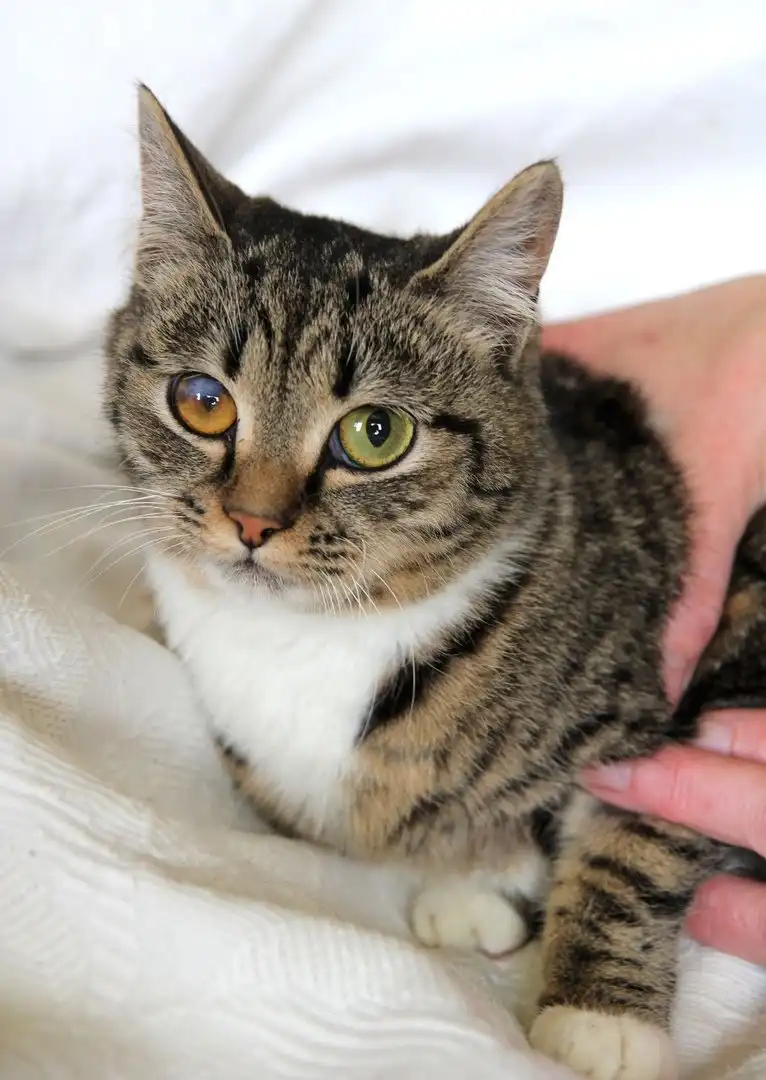 Кошка Рита, окрас табби, возраст примерно год. Найдена котёнком осенью на дачах с ужасным больным глазом. Глаз вылечен, зрение нормальное, но остался шрамик, который виден иногда при определённом освещении. Кошечка робкая, до сих пор побаивается людей, но не агрессивна. Ищет доброго, терпеливого хозяина. Питается готовыми кормами, пользуется лотком. Стерилизована.Телефон 8-923-410-24-17 (звонить после 16-00)