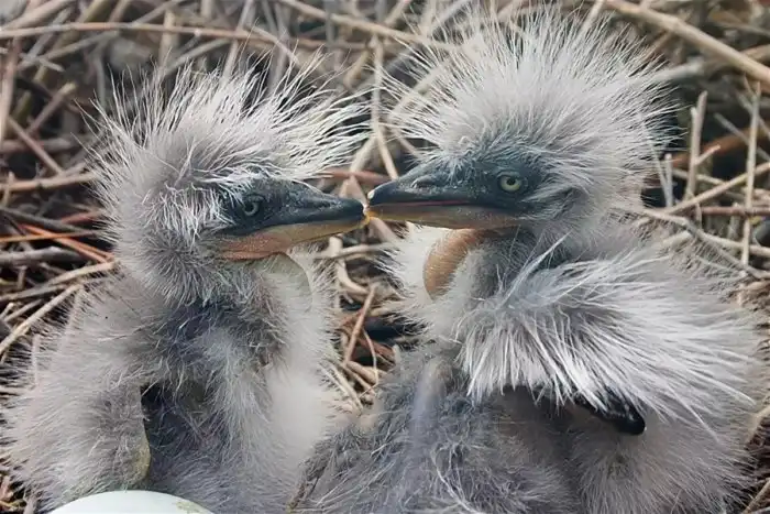 О птенцах родители заботятся вместе. Мамка с папкой поочерёдно высиживают кладку на протяжении месяца. Но на этом гемор не заканчивается. Малыши появляются на свет беспомощными пушистиками. То погрей, то покорми, то летать поучи — весь этот круговорот длится на протяжении месяца.