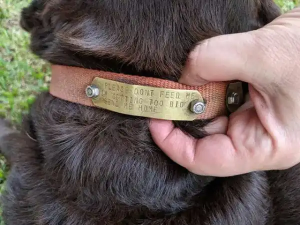 Собаки бывают очень хитрыми — и этот пёс является тому подтверждением. Девушка по имени Лесли Коваш приехала на вечеринку в Джорджию. По её словам, мероприятие было организовано на свежем воздухе, а обеденный стол ломился от вкусных и разнообразных блюд. Судя по всему, это и привлекло хитреца. Дружелюбный пухленький пёс пришёл к людям и, окидывая всех молящим взглядом, начал клянчить еду. Конечно, многие сжалились и начали подкармливать собаку. Однако потом Лесли решила посмотреть на ошейник и кое-что там увидела.