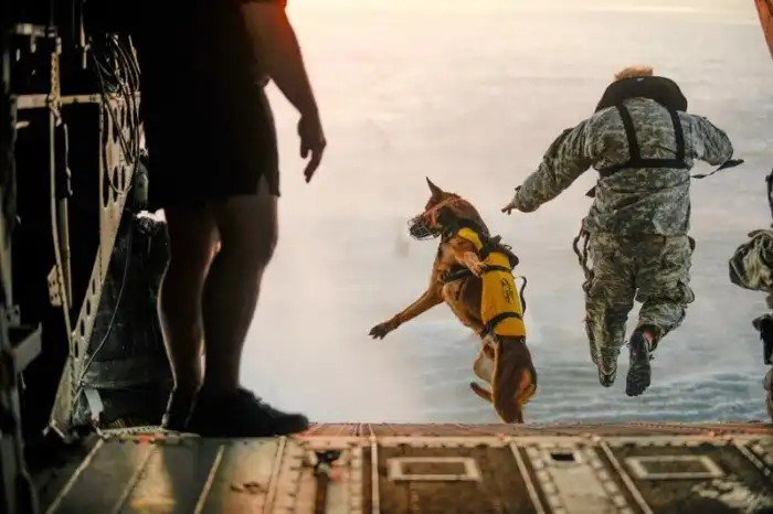 Собака-десантник. Прыжок с вертолета. (Фото Tech. Sgt. Manuel J. Martinez)
