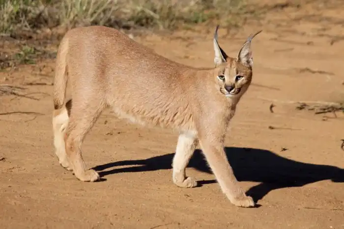 В зависимости от региона, шерсть каракала может быть как бежевой, так и рыжей.