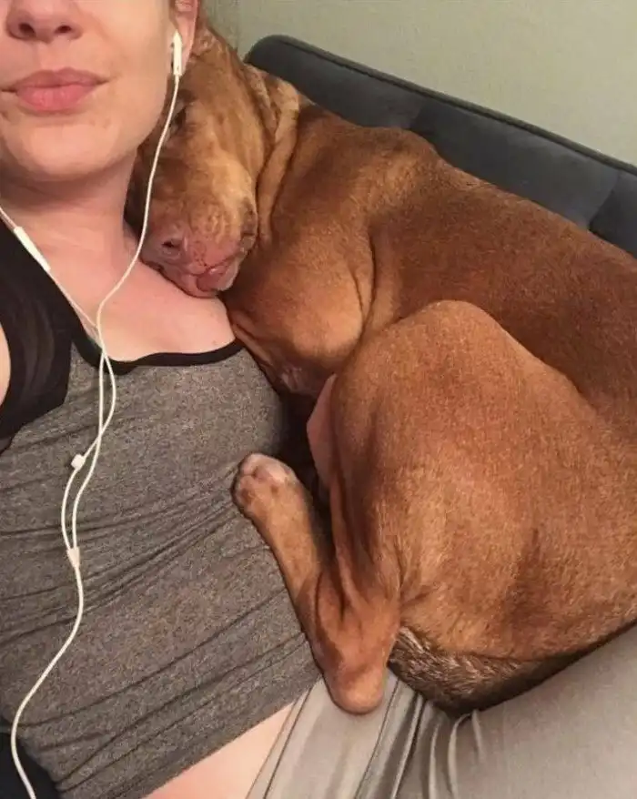 15. "Я страдаю от эпилепсии. Мой питбуль обнимает меня после приступов"