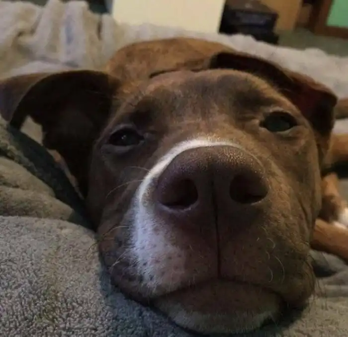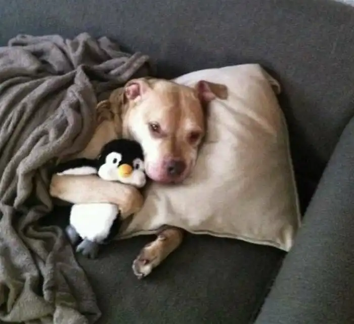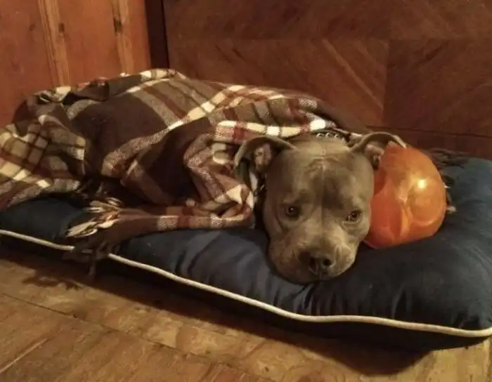 8. "Я сейчас присматриваю за этим питбулем. Он не может уснуть, пока его не укутают одеялом со всех сторон"