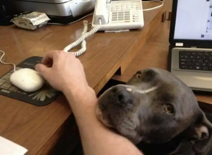 9. "Сын босса каждый день приводит с собой на работу своего питбуля. Теперь мое рабочее место выглядит так"