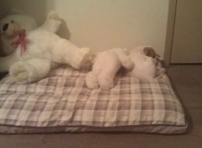 13. "Купил для своего щенка новую подстилку... Увидел, как он перетаскивает на нее своих плюшевых друзей. А потом нашел его спящим в полном блаженстве"