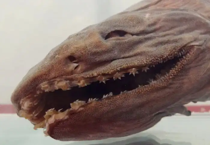 Плащеносной акулу назвали из-за кожных складок, прикрывающих жабры.