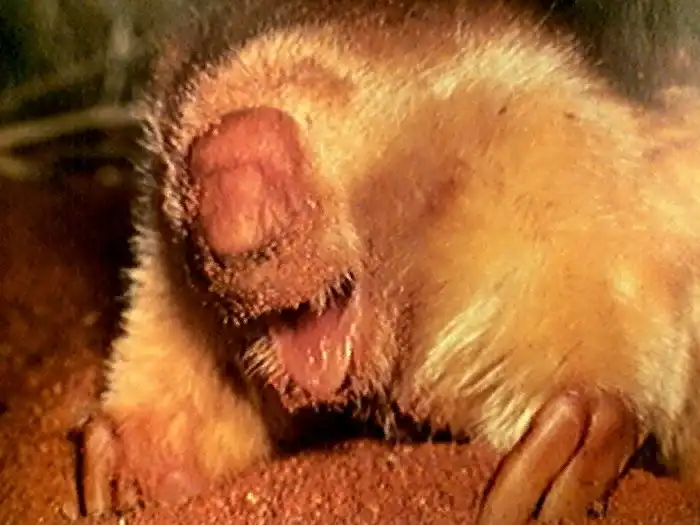 Сразу отметим, что кротом это чудо-юдо зовут чисто номинально. Да, наш герой схож с отечественными слепышами и внешностью и образом жизни, но в насекомоядном отряде сумчатый крот приёмный. Кенгуру, опоссумы и сумчатые волки — вот его истинные родичи.