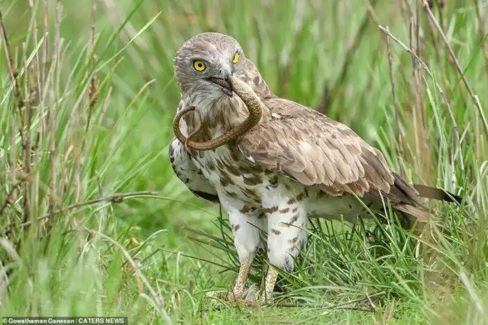 "Когда мы подошли поближе, орлица уже поймала метровую кобру за голову", - рассказал Говатаман