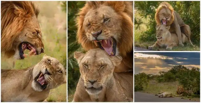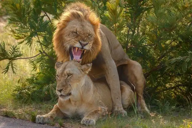 Фотограф дикой природы Рената Эвальд (Renata Ewald) заметила резвую пару больших кошек во время поездки в Национальный парк Крюгер, Южная Африка, в начале этого года. Лев немного порычал и пристроился к львице, чтобы спариться. Однако, судя по морде самки, она не получала ни какого удовольствия от их придорожной встречи.