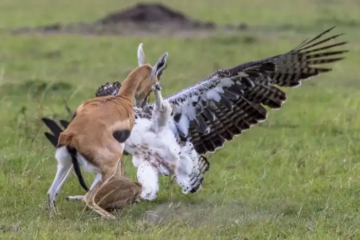 И казалось бы, всем боевой орёл хорош. Но есть те, кто не разделят нашего с вами восторга — африканцы. Они птаху люто ненавидят, отстреливают её, лишь завидев. Дело в том, что под прицел пернатого бойца-молодца попадают как дикие импалы и газели, так и вполне себе домашние овцы и козы. Не имея врагов в дикой природе, боевой орёл, сам того не желая, обзавёлся ими среди людей.