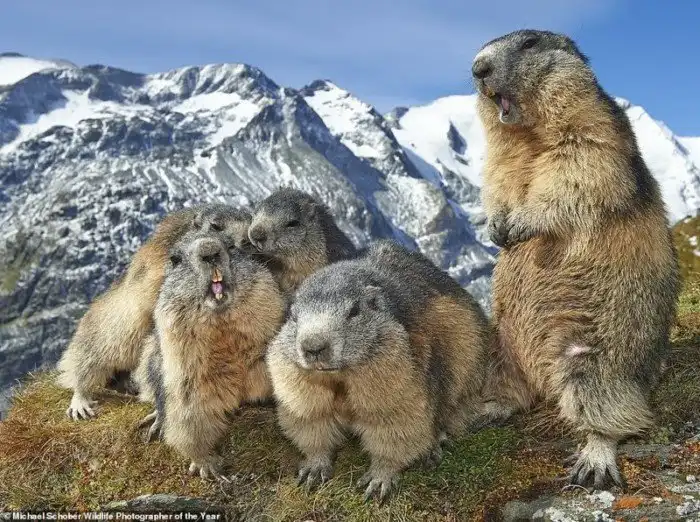 Семейство сурков в национальном парке Хохи Таурен, Австрия.
