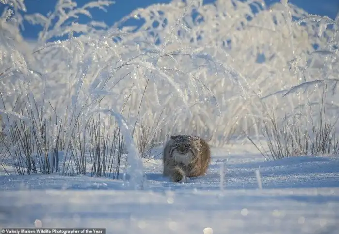 Снимок манула сделан российским фотографом в монгольских степях при температуре -42 градуса по шкале Цельсия. Но фотограф уверен: редкий кадр стоит того, чтобы померзнуть!
