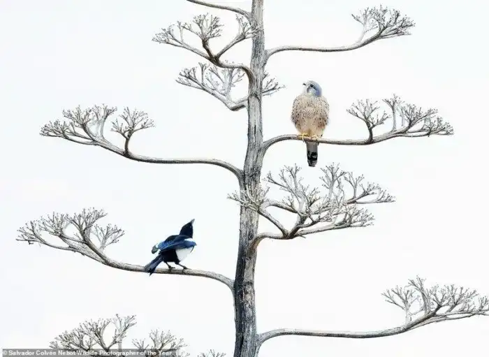 Несколько месяцев фотограф наблюдал за жизнью птиц Валенсии у небольшого пруда, куда пернатые часто прилетали попить воды. Пара пустельг и стая сорок постоянно появлялись там, неизменно вступая в перебранку.