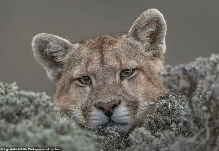 В течение двух лет фотограф снимал пум в национальном парке Торрес дель Пайне в Патагонии. Однажды ему удалось подкрасться совсем близко к спящей пуме - лишь когда фотограф был совсем рядом, она открыла глаза.