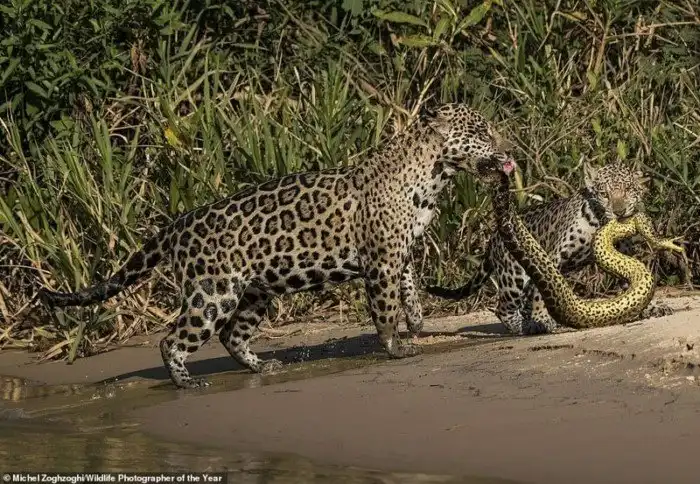 Фотографу повезло заснять ужин семейства ягуаров в бразильской провинции Пантанал.