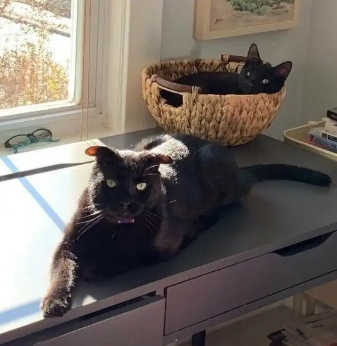 Но, к счастью, у кота есть остроухий братец, который играет с ним