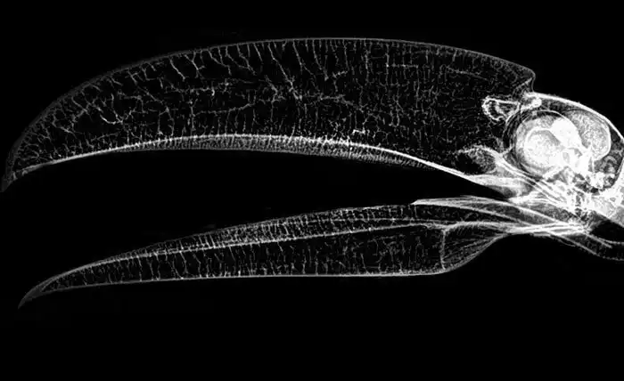 Внутренняя часть клюва состоит из пористой, пенообразной костной ткани с пневматическими полостями, что и делает его легким по весу