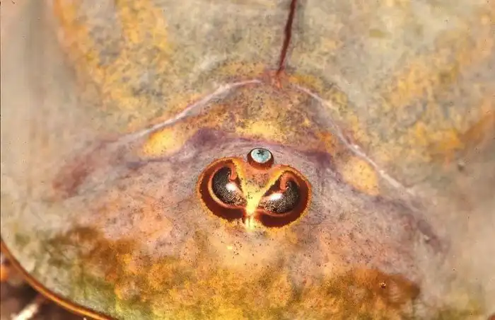 Например, третий глаз. Нет, мы не о даре ясновиденья, а о реально функционирующем органе. Что он делает — для светлых умов до сих пор остаётся загадкой. Одни думают, что он действительно работает как глаз, отличая свет от тьмы, другие предполагают, что этот орган является своеобразным химическим датчиком. Кто его знает, может он этим глазом и вправду будущее видит. Пережил ведь как-то десяток массовых вымираний, по-любому заранее подготовился.
