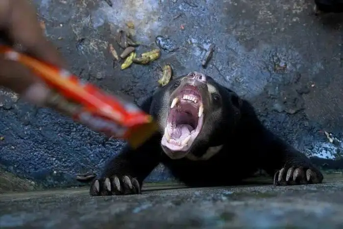 Не один вид погубила китайская народная медицина. И малайский медведь не стал исключением. Только вот мучения косолапых не ограничиваются пулей в лоб. Их страдания длятся годами в Освенциме под названием «медвежьи фермы». Звучит безобидно, не так ли? Только вот здесь из животных выкачивают желчь. Живьём. Без анестезии, без антибиотиков. Запирают в клетках метр на метр, и пользуются ими как вещью на протяжении 5-6 лет — на большее животных не хватает. Азиаты выкачивают жизнь и здоровье у редчайших медведей на планете.