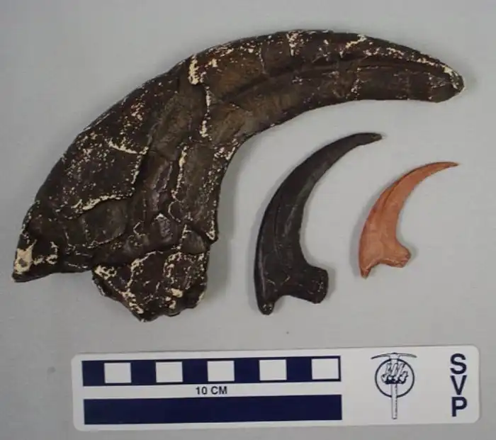 Коготь ютараптора, по сравнению с когтями других дейнонихозавров.
