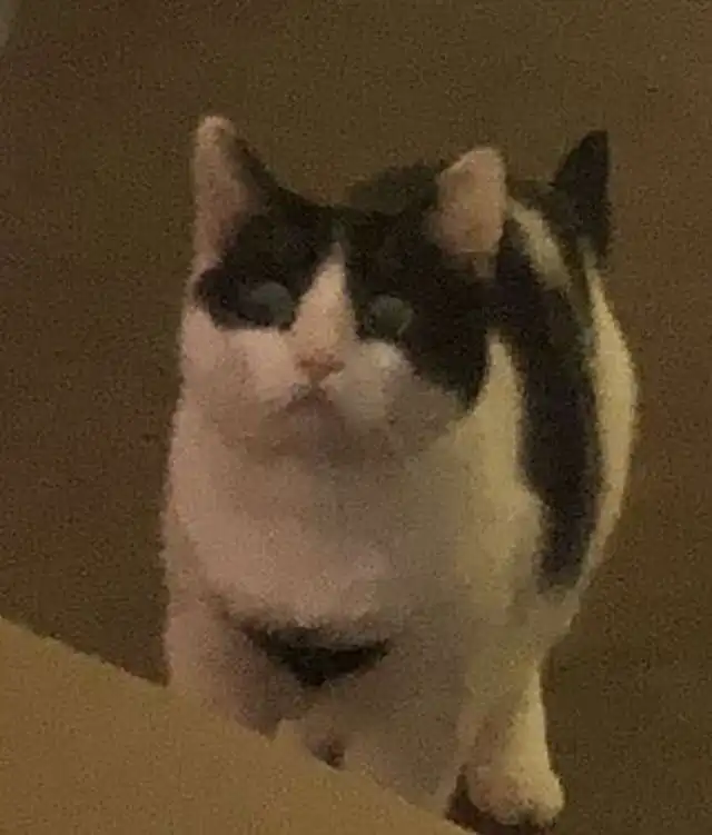 Как-то раз она заглянула к своей сестре, чтобы помочь с переездом. Девушки нашли большую коробку и захотели в ней сфотографироваться. И вдруг в комнату зашел кот по кличке Клоппи. Буря эмоций красноречиво отразилась на физиономии котика.