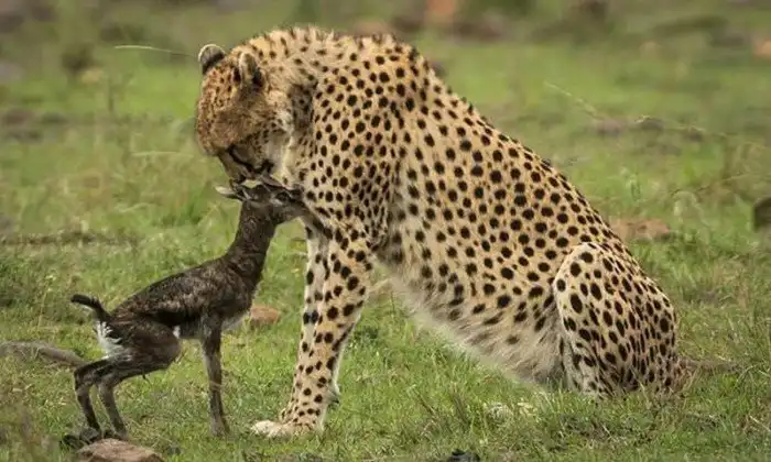 И только когда детеныш начинает убегать, самка гепарда осознает свою ошибку. Материнский инстинкт сменяется на инстинкт преследования и охоты на жертву