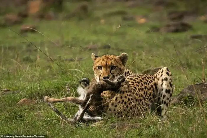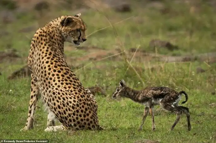 Невинное создание, ничего не подозревая, приближается к самке гепарда