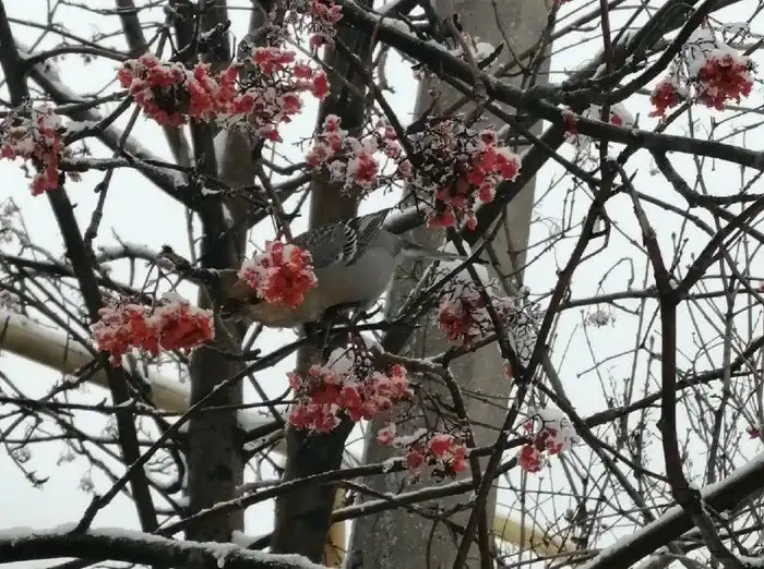 Недавно видела вот таких воробьёв-переростков. До сегодняшнего дня не замечала их в городе, но поживиться рябиной хочет каждый. Пишите в комментарии какой это вид, если знаете.